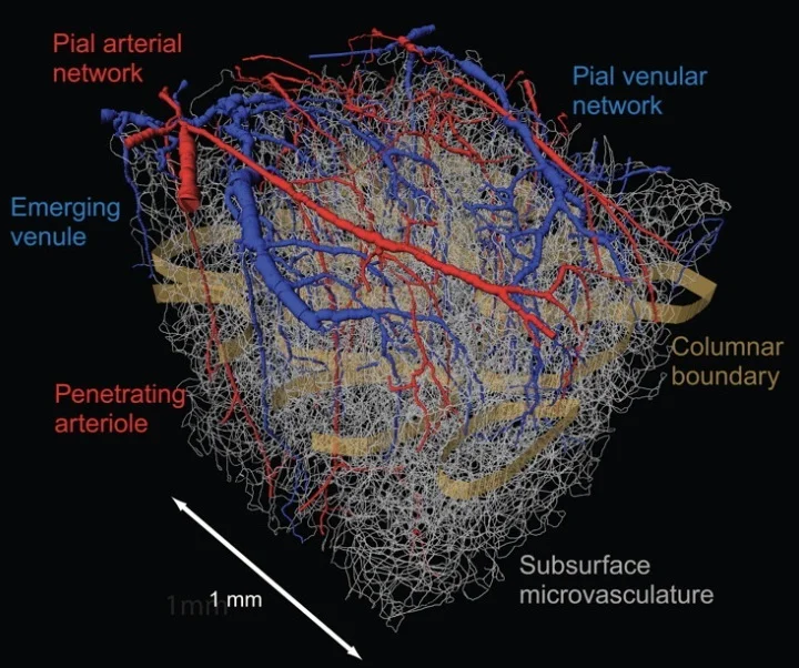 How does the brain compute? Answering this question necessitates neuronal connectomes, annotated graphs of all synaptic connections within defined brain areas. Further, understanding the energetics of the brain's computations requires vascular graphs. The assembly of a connectome requires sensitive hardware tools to measure neuronal and neurovascular features in all three dimensions, as well as software and machine learning for data analysis and visualization. We present the state of the art on the reconstruction of circuits and vasculature that link brain anatomy and function. Analysis at the scale of tens of nanometers yields connections between identified neurons, while analysis at the micrometer scale yields probabilistic rules of connection between neurons and exact vascular connectivity.